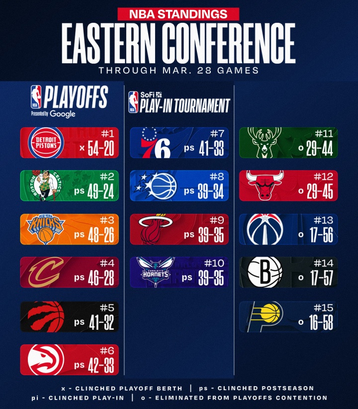 至此东西部无缘季后赛/附加赛的球队分别为: